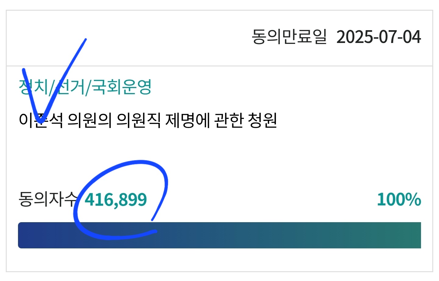 - 현재(2025년 6월 8일 기준) 40만 명 돌파로 국회 회부는 확정적
