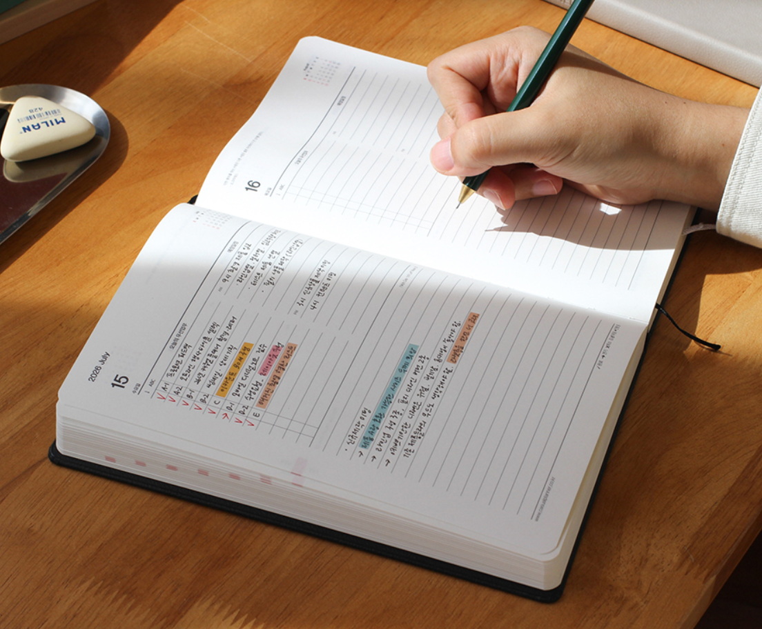 “가치를 기반으로 목표를 설정하고 계획한다”라는 시스템이 탑재되어 있어 단순히 ‘예쁘고 쓰기만 하는 다이어리’보다는 조금 더 구조적입니다. 실제 사용자 후기에 따르면 “시간 블록 관리부터 일정·우선순위 설정까지 한 번에 가능했다”라는 평가가 나옵니다.
